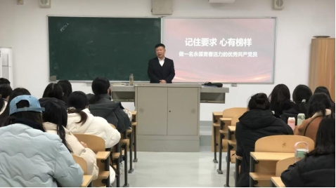 为进一步增强学生纪律意识和规矩意识,引导学生向先进看齐,11月12日晚,新葡官网党总支副书记、院长王全乐为学生党员、重点发展对象以及入党积极分子讲授了《“记住要求,心有榜样”做一名永葆青春活力的优秀共产党员》专题党课。