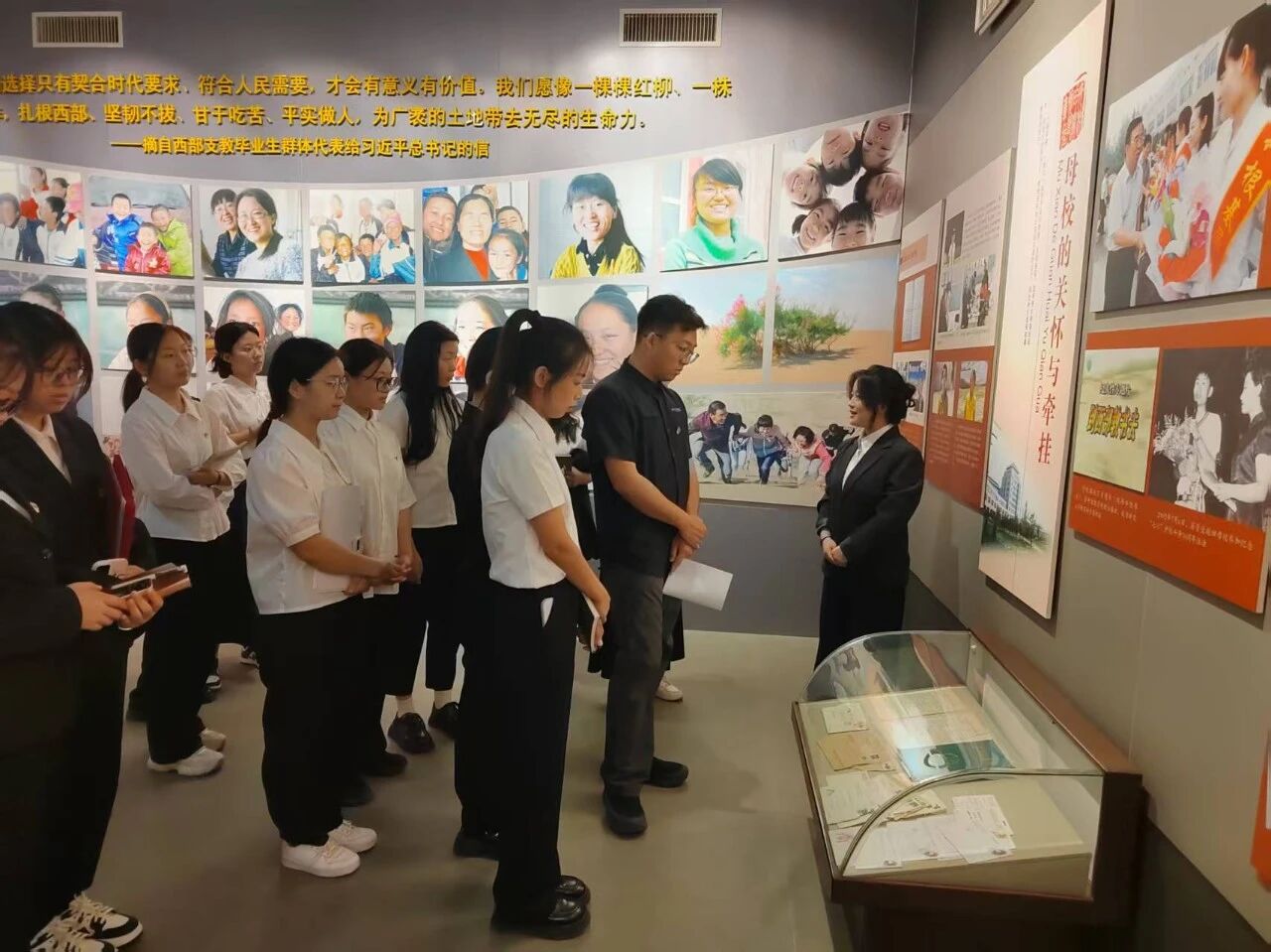 随后,大家来到西部支教纪念馆。这里集中展示了新葡8883官网AMG官网西部支教毕业生群体的感人事迹。展厅里,一张张支教教师在艰苦环境中坚守讲台的照片,一封封饱含深情的学生来信,一件件见证支教岁月的实物,无不深深打动着每一位党员。同学们纷纷表示,要以这些前辈为榜样,学习他们扎根基层、无私奉献的精神,将个人理想与国家需要紧密结合,在未来的教育事业中绽放青春光彩。