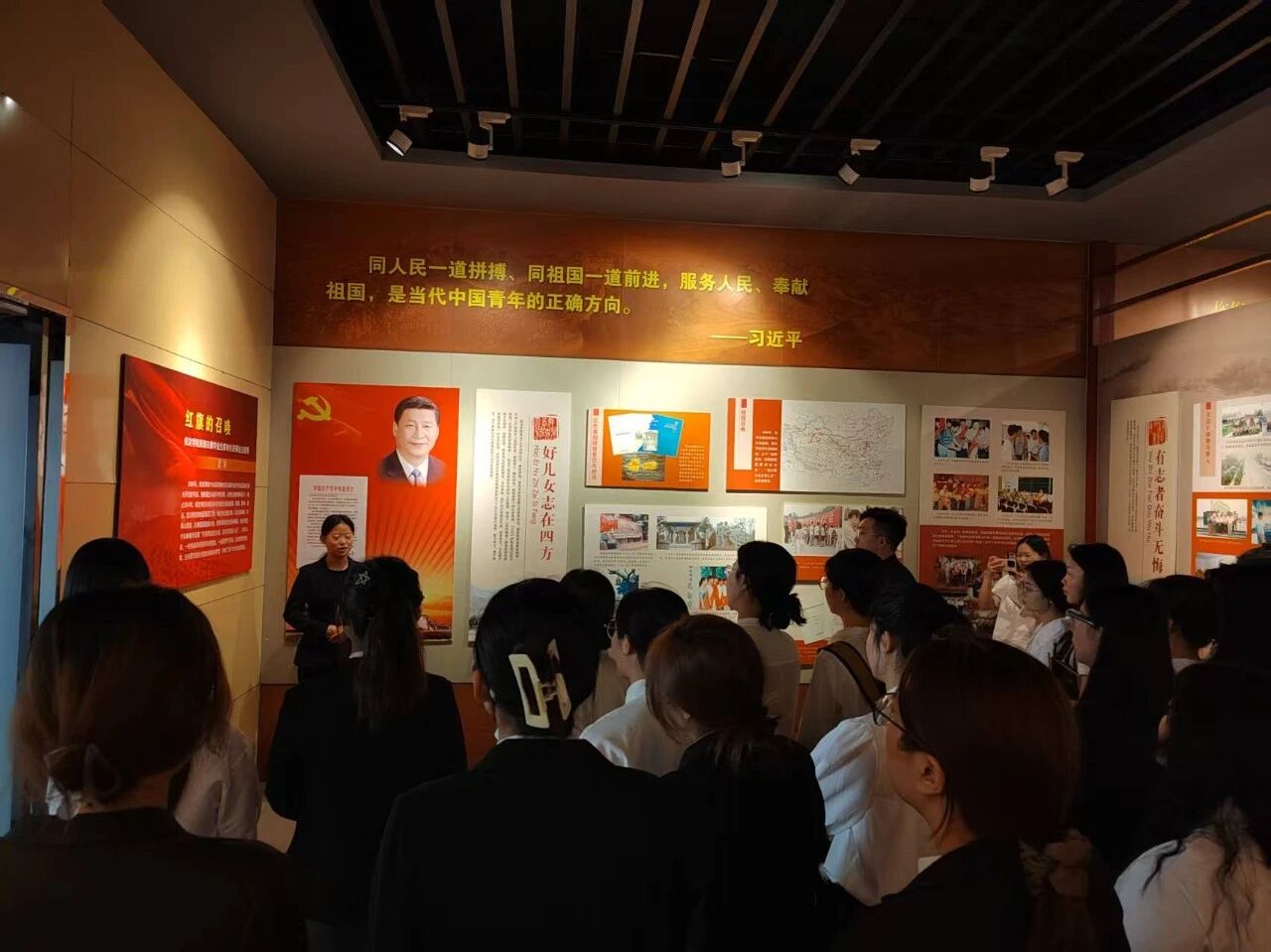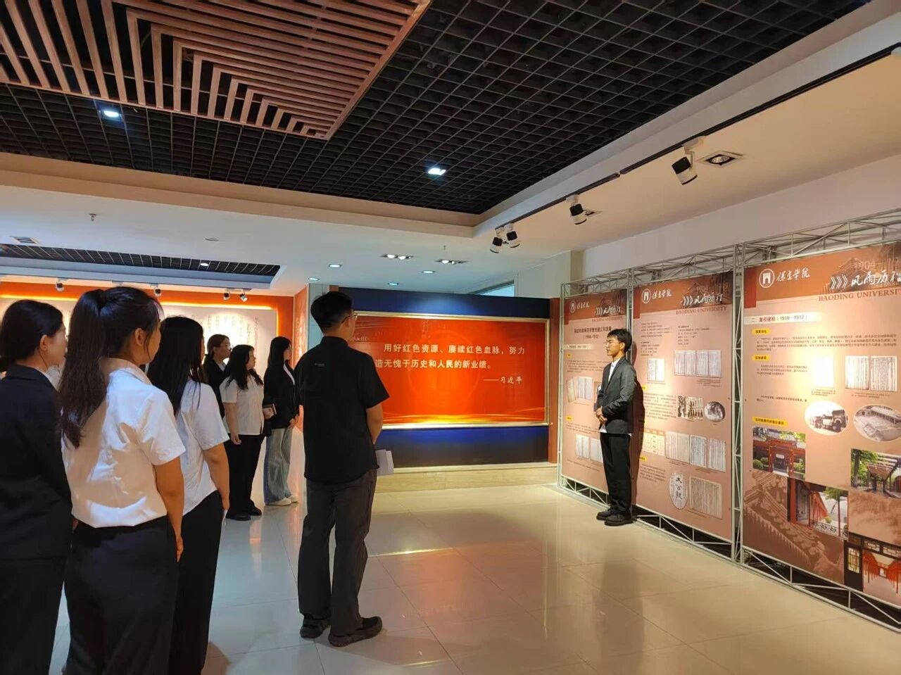 大家首先走进校史馆,一进展厅,便被丰富的史料所吸引。学生们认真聆听讲解,不时驻足凝视,在追溯校史渊源中,深刻领悟“德业兼修,知行并重”的校训精神,也更加明确了作为新时代新葡8883官网AMG官网人所肩负的责任使命。
