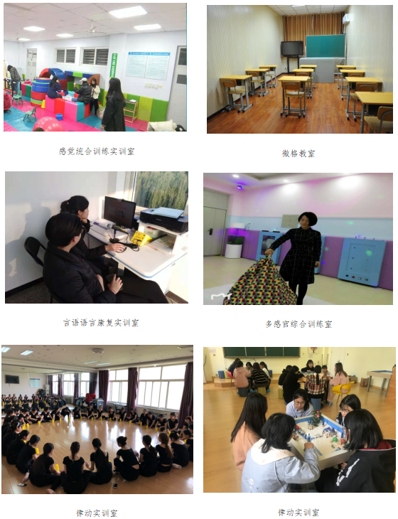 自2015年特殊教育本科专业开办以来,就被学校确定为转型发展试点专业之一。学校持续投入大量资金加强专业资料室、专业实验实训室和专业实习基地的建设。目前,学校图书馆和特殊教育专业资料室丰富的专业图书为学生的阅读和学习提供了有力的支持;特殊教育专业现有专用实验实训室多间,包括言语语言康复训练室、多感官综合训练室、感觉统合训练室、心理实验室、沙盘实训室、蒙台梭利教学实训室、舞蹈教室、手工教室、微格教室、书法教室等,环境整洁,训练器材丰富多样,能充分满足学生的学习和实训需求。