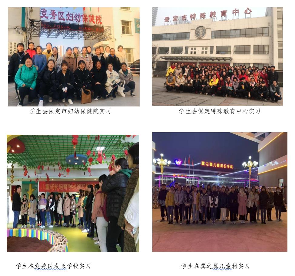 特殊教育专业自开办以来,在课程设置、实践教学等方面始终贯彻紧密联系行业一线工作实际的办学原则。充分利用校外实践教学基地,包括北京市朝阳区爱心雨润智力残疾人康复服务中心、北京昌雨春童康复中心、保定市特殊教育中心、保定市竞秀区妇幼保健院、保定市竞秀区儿童成长学校、石家庄特殊教育学校、三河市同助一康复中心、保定市冀之翼儿童村等实习基地等,增加学习和实践的结合度,提升学生的实际工作能力。
