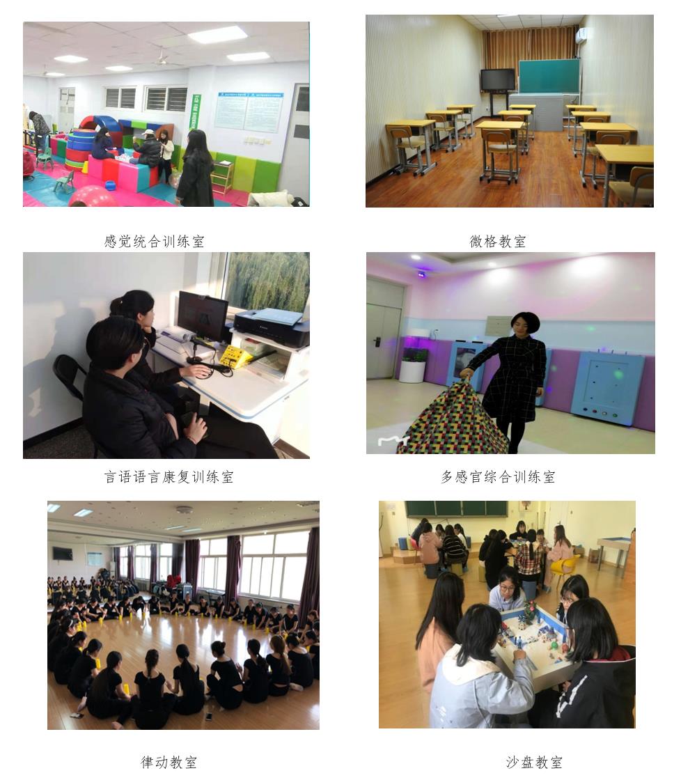 自2015年特殊教育本科专业开办以来,就被学校确定为转型发展试点专业之一。学校持续投入大量资金加强专业资料室、专业实验实训室和专业实习基地的建设。目前,学校图书馆和特殊教育专业资料室丰富的专业图书为学生的阅读和学习提供了有力的支持;特殊教育专业现有专用实验实训室多间,包括言语语言康复训练室、多感官综合训练室、感觉统合训练室、心理实验室、沙盘实训室、蒙台梭利教学实训室、舞蹈教室、手工教室、微格教室、书法教室等,环境整洁,训练器材丰富多样,能充分满足学生的学习和实训需求。