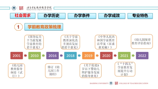 从2001年至今,教育部、中共中央国务院陆续颁布了一系列学前教育的政策、法规、意见,可见社会以及国家对学前教育的高度重视。中共河北省委、河北省人民政府在《关于学前教育深化改革规范发展的实施意见(2019)》中提到,要逐步提高全省公办园在编教师比例,进一步提高幼儿园教师社会地位、待遇保障,增强职业吸引力。新葡官网积极响应国家政策的号召,为社会国家培养优秀的学前教育工作者。