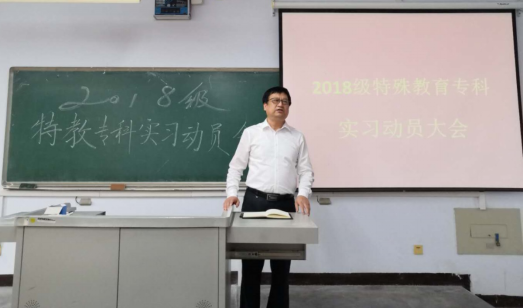 在实习动员大会上,王文清副院长首先从《特殊教育专业人才培养方案》出发,阐明了实习的依据,并解读了实习的意义。