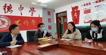 育德中学的校领导和老师们对调研小组表示热烈欢迎,育德中学副校长刘卫东,心理教师王佳静以及19、20级应用心理学专业实习生们参加了座谈活动。