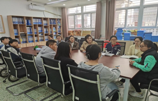 图二:新葡8883官网AMG官网三位教师与聂研校长、实习生座谈
