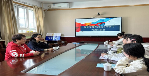 图二 张艳芬老师与河北小学王金红校长及实习生进行座谈