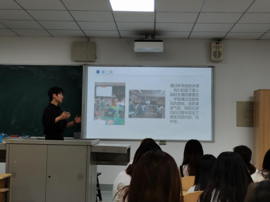 “我们以一种新的身份、新的心态去到学校见习。在这里我们不再是学生,而是见习老师。我们第一次以跟班老师的身份和初三的同学们共同完成一次团辅活动,帮助他们释放压力,自信迎接中考;也是第一次真实的听到一节中学生心理课,学习心理老师 如何上好一节心理课,真实的发现课堂上可能会出现的问题以及需要应对的情况;也是第一次以代课老师的角色,独立的完成两个班的心理活动课。在这三天中收获的是对突破自我的满足和兴奋。”
