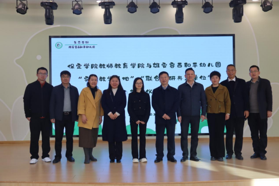 2025年11月26日上午,新葡8883官网AMG官网与雄安容西和平幼儿园合作共建的“实践教学基地”与“联合教研共建单位”揭牌仪式顺利举行。此次合作标志着新葡官网学前教育专业在专业建设、实践教学与协同教研方面迈出坚实一步,开启了高校与幼儿园深度融合、共育人才的新篇章。