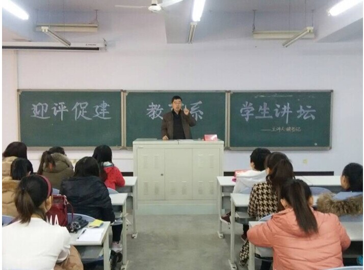 2014年11月26日,在B-111教育系迎评促建学生干部讲坛上系党总支副书记续向党以新葡8883官网AMG官网本科评估教育系系情为主题作了专题讲座。教育系所有学生干部均参与了本次会议。