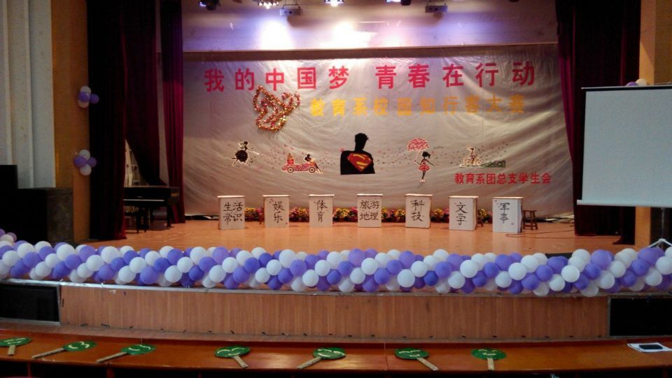 自2015年5月19日晚大艺节以“我是汉字王”为主题的拼词写字的比赛中36组选手脱颖而出后,以“时间都去哪儿了”为主题的复赛也在5月28日晚拉开帷幕,选手们以自己拍摄的照片和视频为中心进行了声情并茂的演说,其中10组选手以出众的才艺和动人的演说成功晋级决赛。 6月9日晚,十组队伍在新葡官网多功能厅展开最终的巅峰对决。 晚上6:15分比赛现场及各位选手准备就绪。晚上6:30分,比赛正式开始。本次比赛非常荣幸的请到院团委郝书记、教育系续书记、王文清主任、王树林老师、赵曼老师、李倩老师、担任本次比赛的嘉宾及评委。本次比赛形式新颖,七位美女关主分别代表生活常识类、娱乐类、旅游地理类、文学类、军事类、科技类、体育类题目,十组队伍分别为希望之星队、管理小分队、名华队、Surprise队、主旋律队、轻歌曼舞队、梓瑜队、花儿乐队、锐利队、向阳队。在一段青春洋溢的开场舞后,由续向党书记做了激情澎湃而不失幽默的演说,接着主持人介绍了比赛规则和注意事项,比赛有序而精彩的进行着,各位选手准备充分,才华横溢,形形色色的表演引人入胜。比赛接近尾声时主持人以一段精彩的才艺表演完美收尾。比赛结束后主持人宣布了十组参赛选手获得的奖项,分别由续书记、赵曼老师、王树林老师、李倩老师为选手颁奖。