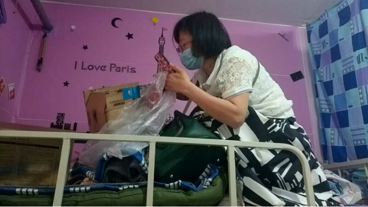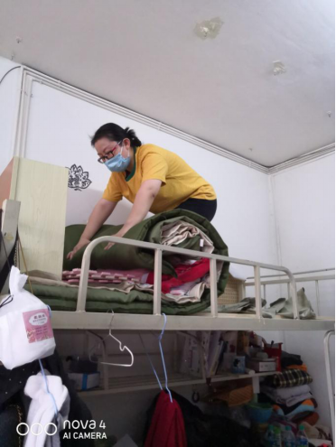 爬上爬下,挑选打包,书写地址,联系快递……累得满头大汗、气喘吁吁,电话一边充电一边视频,与学生逐一核对,尽管流量用了两个多G,第一天,我也只整理了三名学生的行李。而身体已是累得腰酸背疼腿发沉了。汗颜,汗颜!百无一用是书生啊!哦,不对,我连书生都不是!我只是个女教师。而且,想必在你们的心中,我还是一名严厉的女教师。你看: