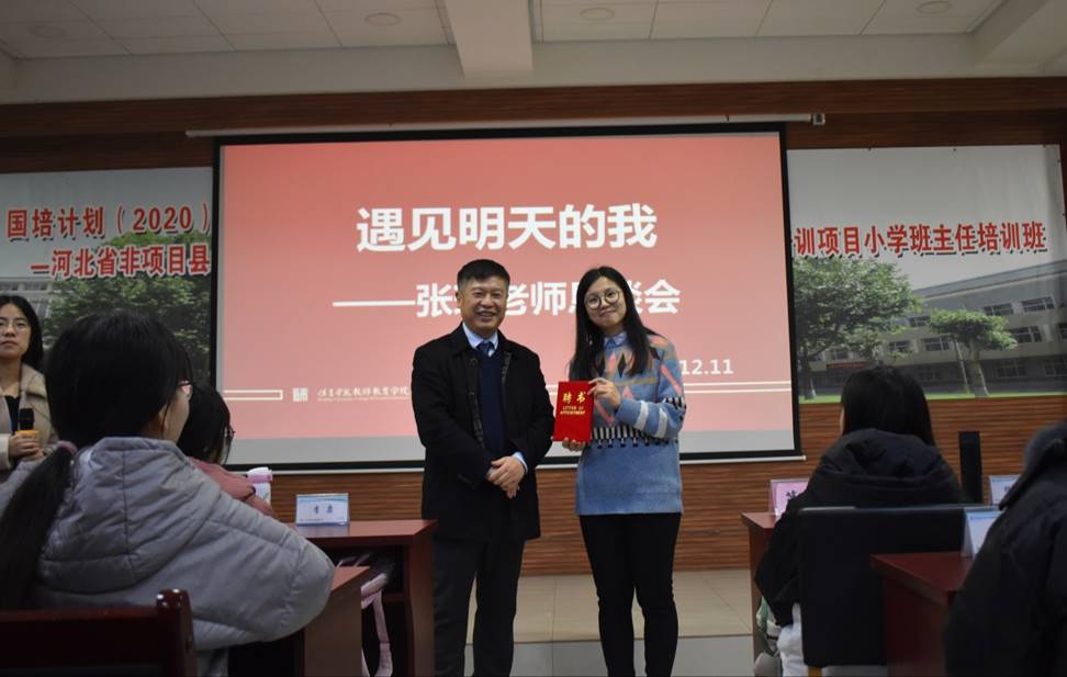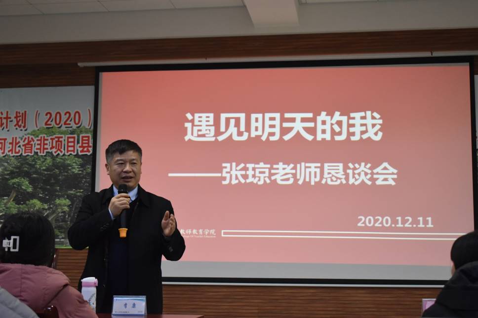 为了帮助小教专业同学做好职业规划,2020年12月11日晚上,新葡官网聘请邢台市 “最美教师”为2018级小学教育专业全体同学做了题为“遇见明天的我”——张琼老师恳谈会。院长王全乐,小学教育专业负责人张艳芬,教师肖艳、杨伦出席了讲座。