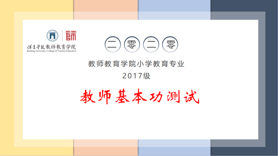 为强化小学教师职业技能,提升职业胜任能力,2020年12月16日,2017级小学教育专业105名学生在G-412、E-3-102、E-3-106进行教师基本功考核。本次考核特邀莲池区东金庄乡总校部张艳红书记,莲池区东金庄乡第一小学王秋立校长,北京森林国际外国语学校李春建、崔亚丽校长等一线专家担任评委。