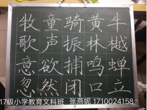 作为一名准教师,写好三笔字不仅是教师的基本功,更是教师综合素质的重要体现。教师的一言一行,一笔一画都起着重要的引领作用。小学教师的字,是小学生的活字帖,能给学生一个良好的启蒙,所以教师不但要有扎实的专业知识,还应练好一手规范漂亮的楷书字,并掌握一定的书法理论知识,提高自身的写字修养,给学生一个良好的启蒙,使之终身受益。同时,本专业非常重视学生基本功的训练,并组建了书法社团,组织学生每天练习粉笔字和硬笔字,为大家提供了一个学习、练习的平台。