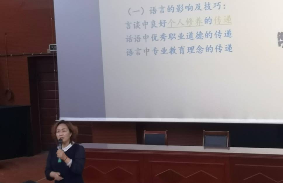 最后一个出场的是青年路幼儿园的赵景梅主任,赵主任接受政府的委派,正在阜平县支教,接到邵老师的邀请,一边支教,一边备课,为同学们带来了一场《幼儿园家长工作技巧》的专题分享。由于会场四点钟还有另外的安排,赵主任还提前了半个小时从阜平赶回来,只为能够尽其所能传递给同学们更多的家长工作的经验。赵主任幽默风趣的讲课方式令同学们忍俊不禁,学习兴趣甚是高涨。