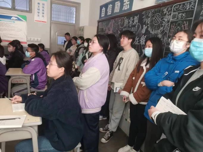 2019级实习生在教室后面听课             2020级实习生观摩“自信与自卑”心理课