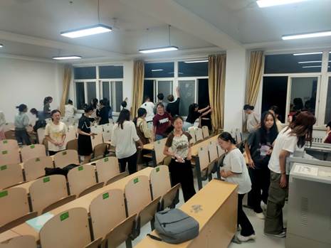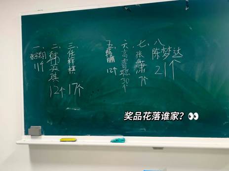 随后,时间交给了班长凌嘉欣。她示意前排同学关灯,并用音响渲染氛围,告知同学们游戏规则,组织起了第一轮寻宝游戏。原来在夜幕降临前,班委会已在教室里分散藏匿数十张贴纸。完成现场分组后,在规定时间内寻找到贴纸数量最多的一组获胜。同时全组成员将获得神秘奖励,作为对他们齐心协力,敏捷细致的嘉奖。