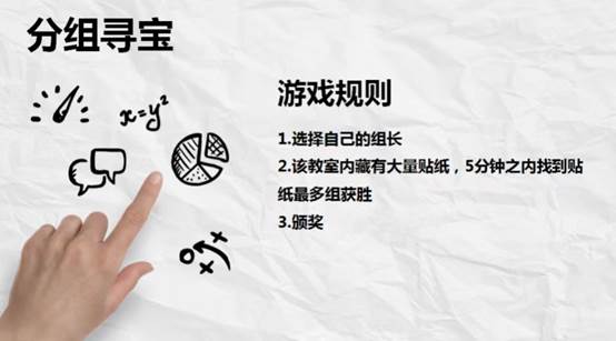 接下来进行的是妙趣横生的破冰小游戏——寻宝活动,这场活动增强彼此的默契,迅速熟络,在为团队争光的同时打破尴尬与陌生。