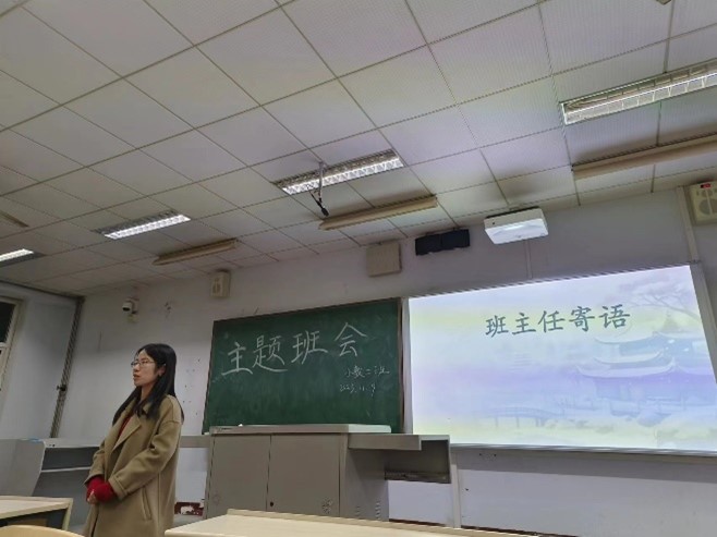 谆谆嘱托。在本次班会的结尾,班主任杨伦分享了自己的大学经历,鼓励同学们积极进取,努力适应大学生活;认真学习专业知识,直面困难与挑战;鼓励各个小组为班级服务,团结协作。