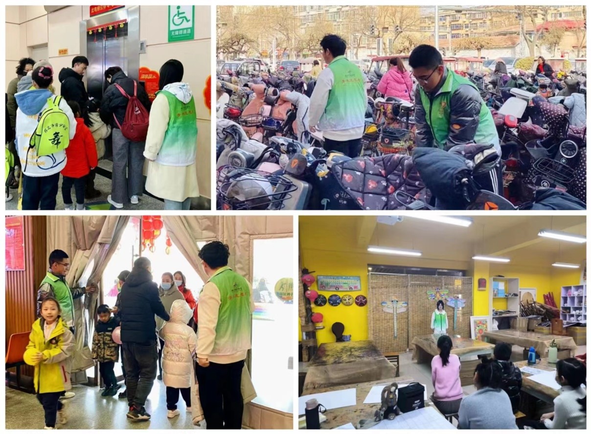 志愿者们在一层大厅为家长和孩子们指引路线、解答疑问,并走进教室为小朋友们宣讲雷锋故事,弘扬雷锋精神,班会上引起同学们的热烈讨论。