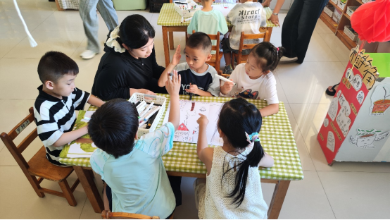 转入教室后,实践团队同步带领两个班级的幼儿进入创意表达环节。