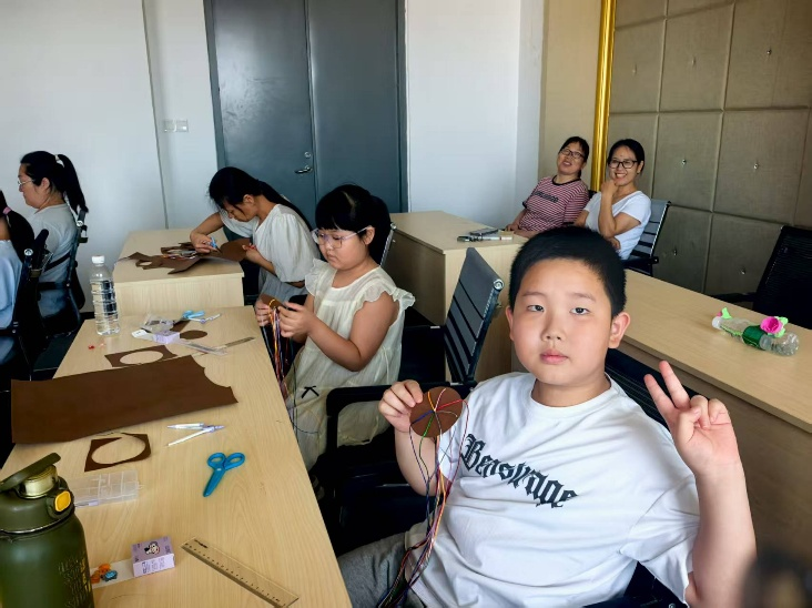 劳育是“五育”的纽带,能培养劳动习惯、珍惜劳动成果。在《手工五彩绳编织》课上,贾欣平带领孩子们用彩色毛线编出“专属幸运手链”,硬卡纸、打孔器、剪刀在手中翻飞,每一个绳结都凝聚着专注与用心。