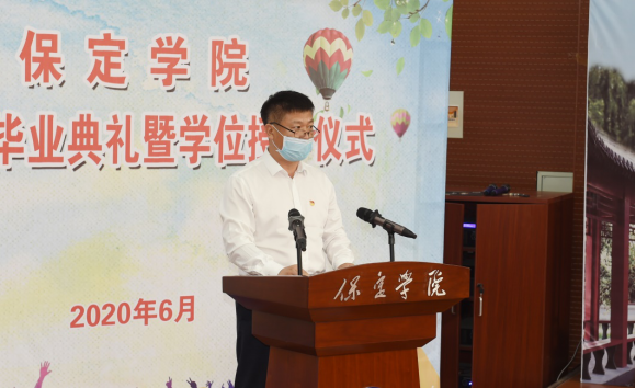 王全乐院长作为教师代表发言,叮嘱毕业生要发扬母校光荣传统,心系国事,胸怀天下,与时代发展同心同向、同频共振,做一个有智慧、有格局、有情怀、有担当的人。