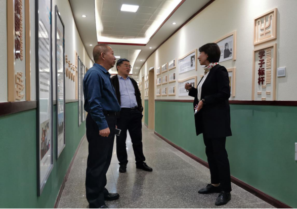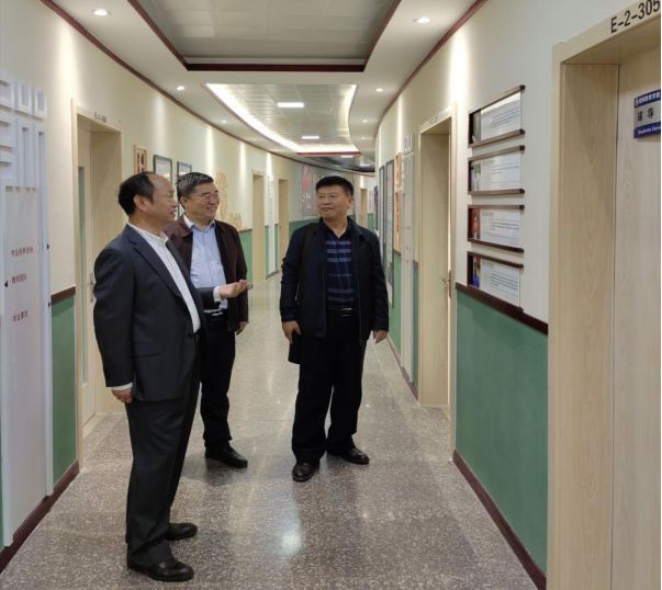 胡书记、马校长察看了学院环境建设、教学基本功展示平台,给与了充分肯定并提出了很好的改进意见。其间,王全乐院长汇报了“三标一行,以文化人”的建设理念以及育人功效。