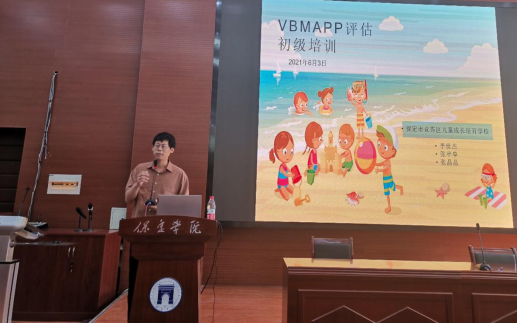 2021年6月3日,新葡官网邀请保定市竞秀区儿童成长学校李世杰主任、张单单老师和张晶晶老师,在昌绪报告厅为2019级、2020级特殊教育专业全体学生进行了“VB-MAPP评估”初级培训,新葡官网殷永清、郝怡娜老师一同参加。