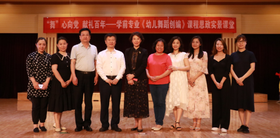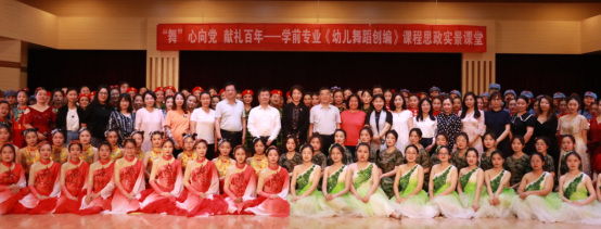 2021年6月9日下午,新葡8883官网AMG官网学前教育专业在闫肃音乐厅举办以“庆祝中国共产党建党100周年”为主题的学前教育专业《幼儿舞蹈创编》课程思政实景课堂展演。出席本次活动的领导老师有新葡8883官网AMG官网党委常委、副校长马丽娟,教师教育学院院长王全乐、副院长王文清、党总支副书记续向党、团总支副书记刘克利、学前教研室主任邵巧云、小学教育专业教研室主任种竟梅以及部分老师。