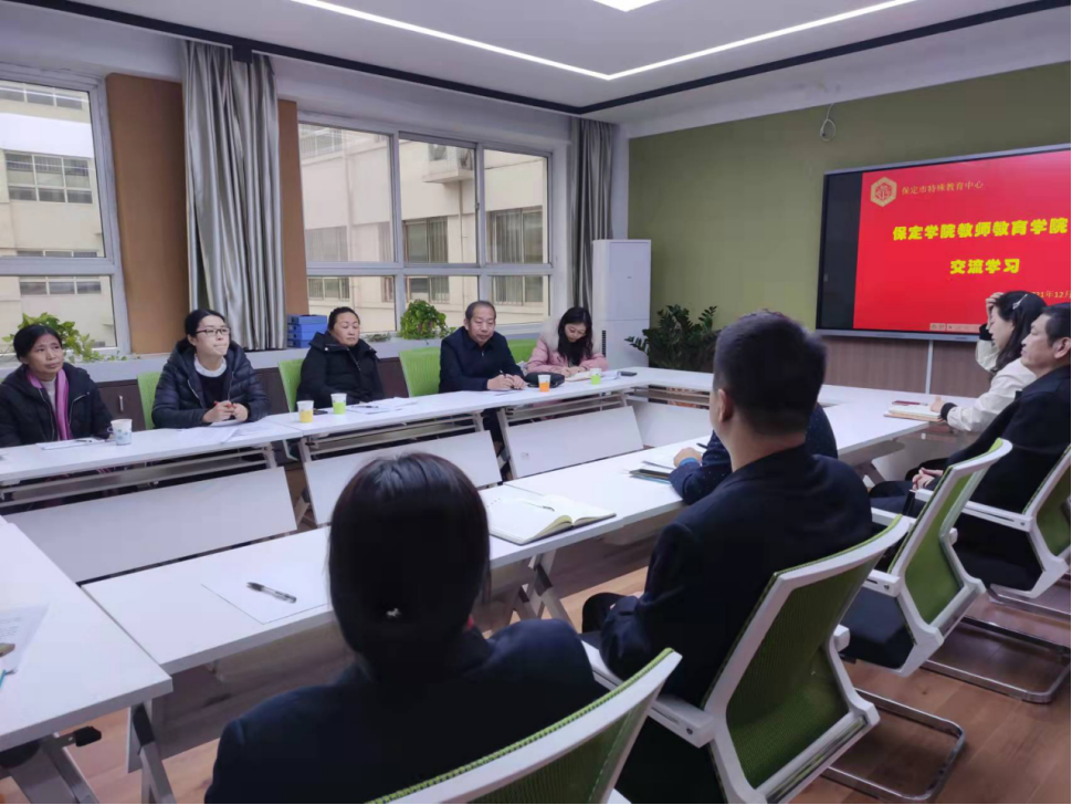 为进一步推动新葡官网特殊教育专业建设水平,提升专业人才培养质量,12月23日下午在新葡官网马立志书记的带领下,特殊教育教研室主任郝怡娜和教研室李红梅老师、鞠小齐老师、赵曼老师和殷永清老师深入到保定市特教中心,开展人才培养调研工作。