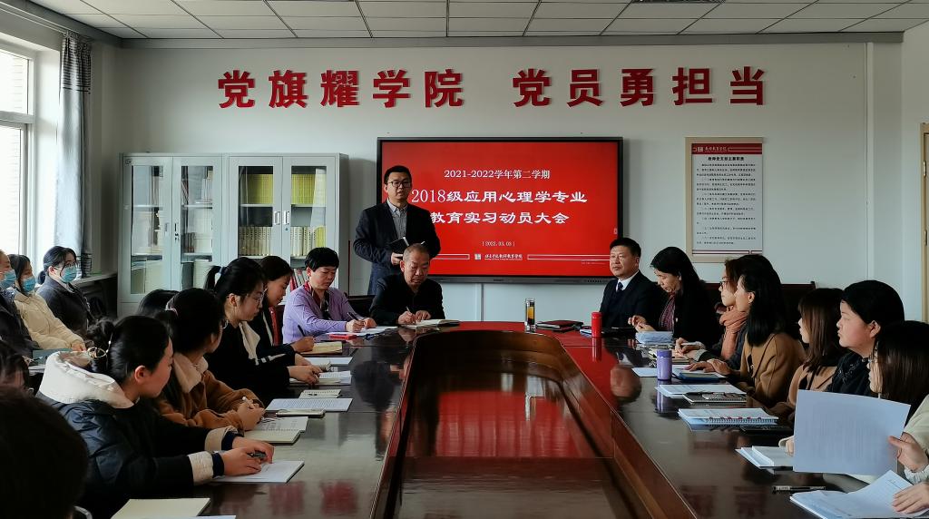 2022年3月3日下午, 2018级应用心理学实习动员大会在学院会议室顺利举行。新葡8883官网AMG官网总支书记马立志、院长王全乐、副书记张瑞红、副院长种竟梅、应用心理学教研室主任李俊茹、辅导员赵紫燕以及各位实习指导老师出席本次动员大会。会议由实习实训教研室主任纪元老师主持。