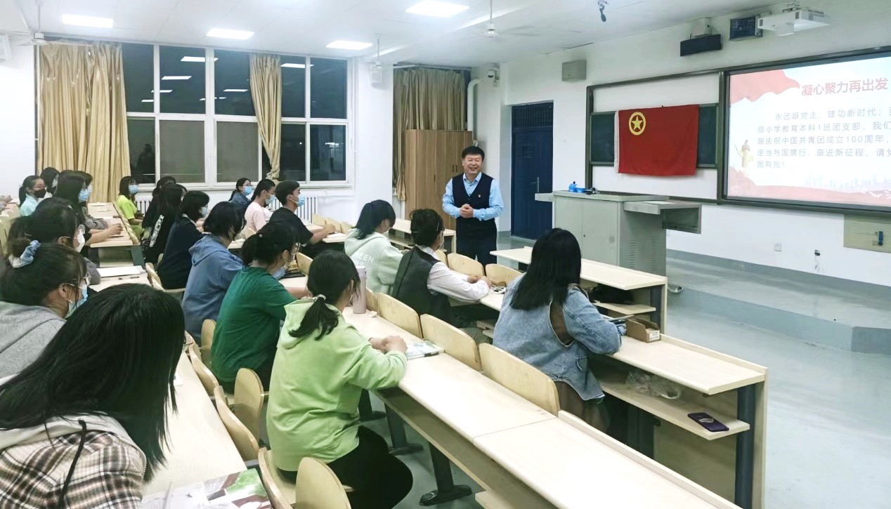 2022年5月1日晚,在五四青年来临之际,为庆祝中国共产主义青年团成立100,继承和发扬“五四”精神,21级小学教育本科1班团支部于E-3-308教室召开了“激扬五四精神,庆祝建团百年”主题团课。特邀新葡8883官网AMG官网院长王全乐老师和大家一起参加。