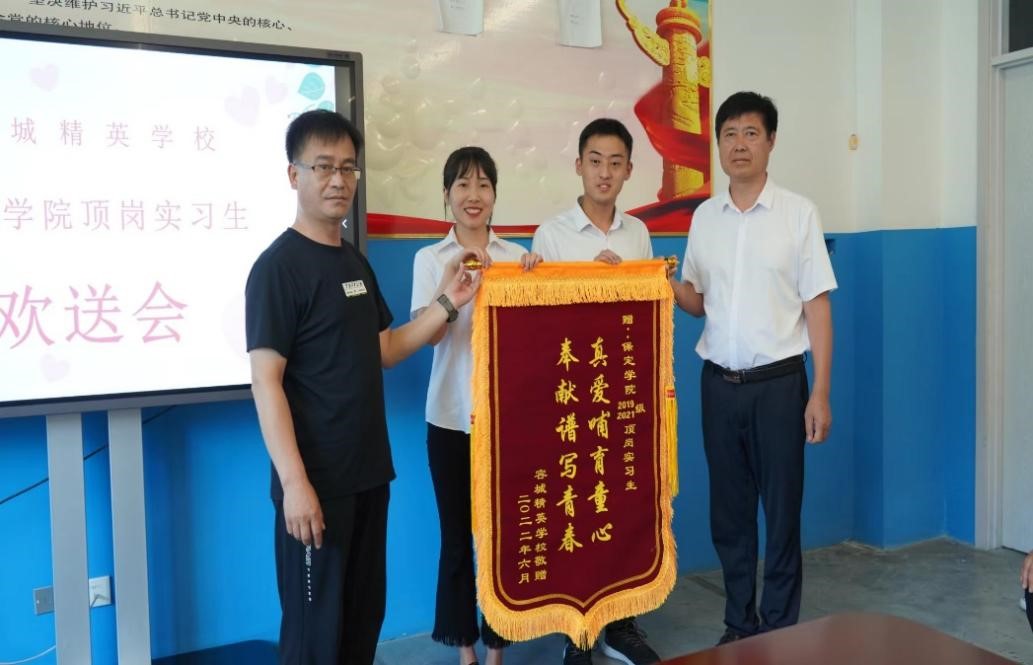 近日,一面写有“真爱哺育童心,奉献谱写青春”的锦旗由新葡官网顶岗实习学生上交学院(因疫情原因,学生未返校,所以一直由实习学生保管),以表彰小学教育2019级文、理班和2021级专接本班共11名同学在顶岗实习期间的优异表现。这些同学分别为:2019级文班的李酷、雷娟、刘莹、李滋悦、李梦涵;2019级理班的田一丹;2021级专接本班的于盼、刘倩、金绍波、耿洁文、王美娟。赠者为容城县精英学校。
