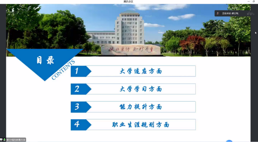 讲座分为四个部分,大学适应、大学学习、能力提升和职业生涯规划。每个部分郝士瑶都结合自己的学习和工作经历进行了详细的分析和指导。她耐心地向学生们分享专业课程的学习经验,展示自己提升能力的方法,为学生坚定专业信念、形成个性化的职业规划提供方向。