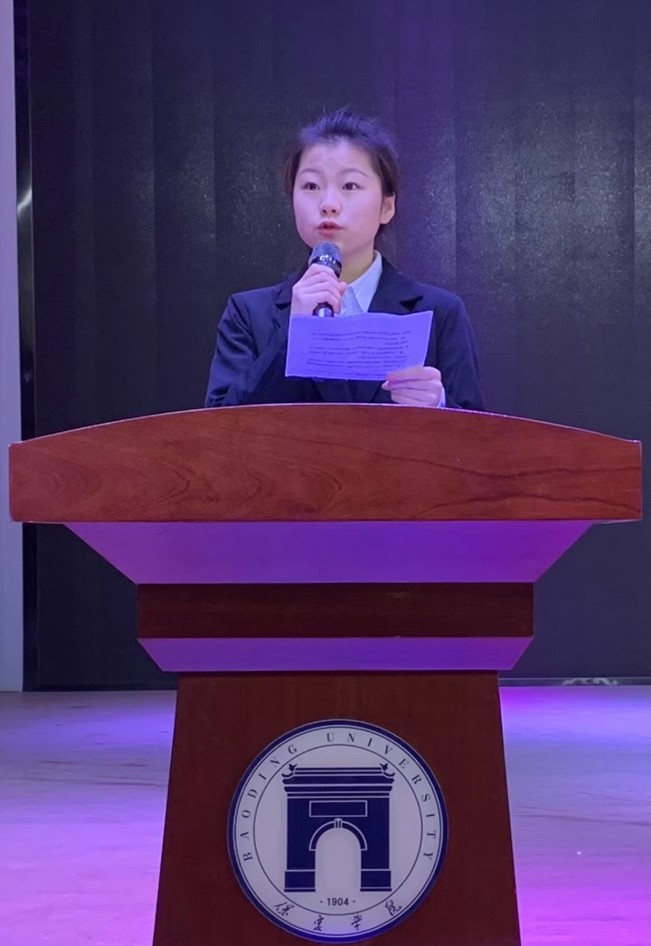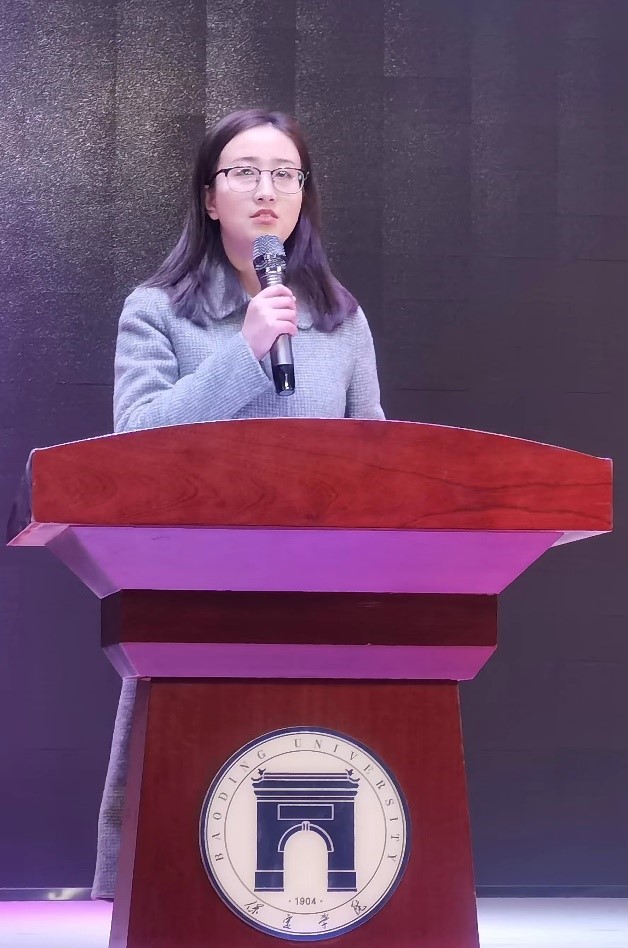 最后,2020级应用心理学专业张秀颖同学作为实习生代表发言,她表示,作为实习教师一定会严格遵守学校和实习单位的各项规章制度,尊师重教,在实习的过程中潜心向学,力争在实习生活中迅速成长为一名优秀教师。