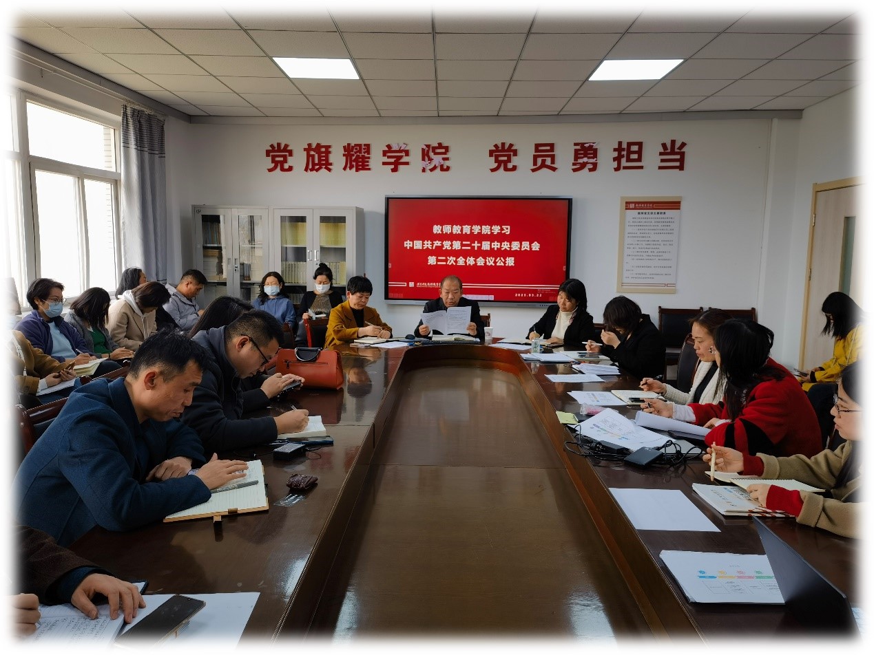 3月22日下午,新葡官网组织教工认真学习党的二十届二中全会精神,马立志书记领学了《中国共产党第二十届中央委员会第二次全体会议公报》,全体教工认真聆听并学习。