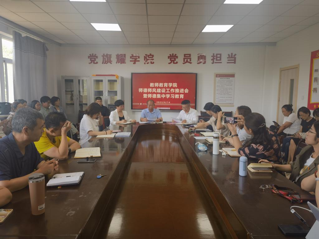王全乐院长传达了教育部师德师风建设工作推进暨师德集中学习教育启动部署会和全省师德师风建设工作推进暨师德集中学习教育启动部署会的会议精神。要求教师们按照学校党委要求,把师德师风建设摆在更重要位置,坚持政治引领,强化师德学习教育,以教师自律自强良好氛围凝聚推动教师队伍建设磅礴力量。