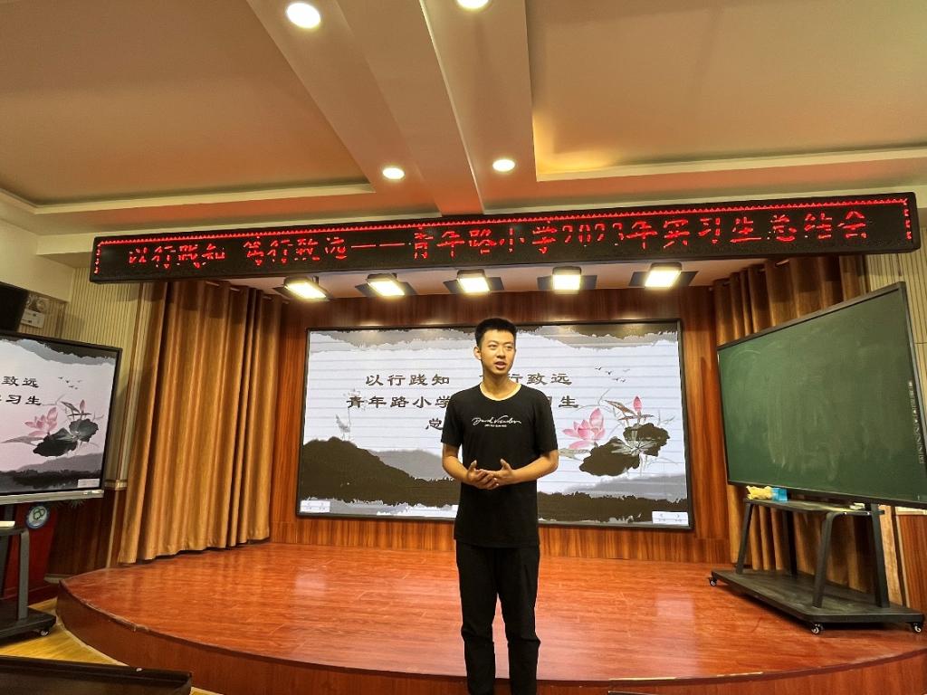 首先,青年路小学主任王俊元主持开场,14名实习生依次上台做实习总结,同学们表示通过四个月的实习,不仅将学校所学理论知识转化为了实践,更参与到了学校日常方方面面,提高了沟通能力和组织能力,在青年路小学收获了职业幸福感,第一次被小学生叫老师很幸福,第一次登台上课很幸福,第一次感受丰富多元的校园文化很幸福……