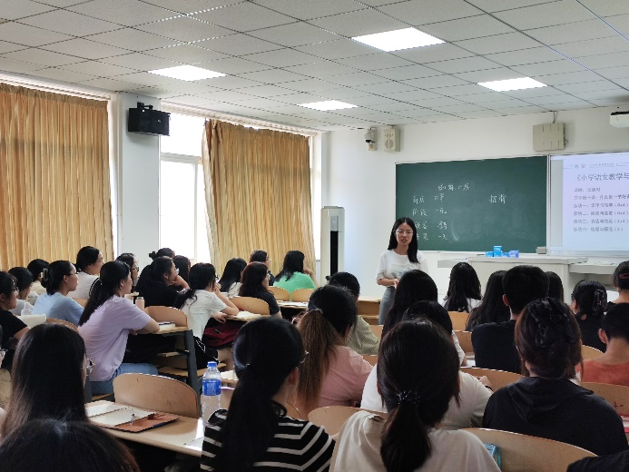 九月伊始,秋意渐浓,师生以饱满的精神启动学期新征程。9月4日下午的“小学语文教学与研究(二)”课堂中出现了一幕特别的场景,授课教师杨伦邀请毕业班优秀学生邵怡文、吴瑶,走进小学教育专业2021级1班课堂共同探讨、学习。