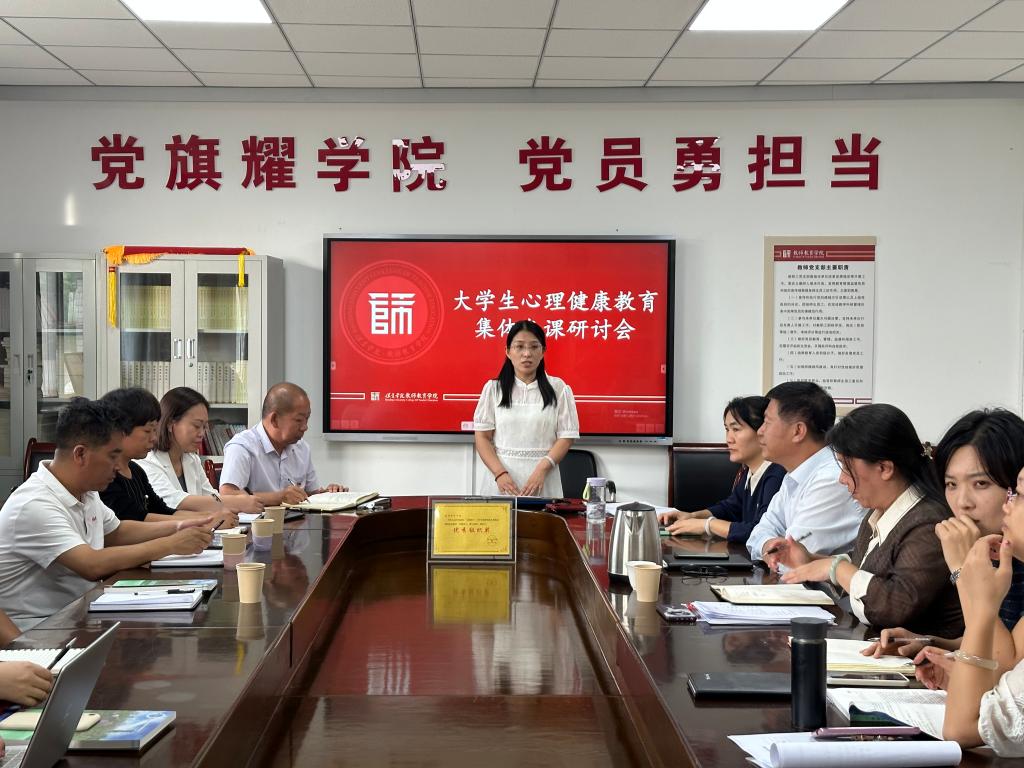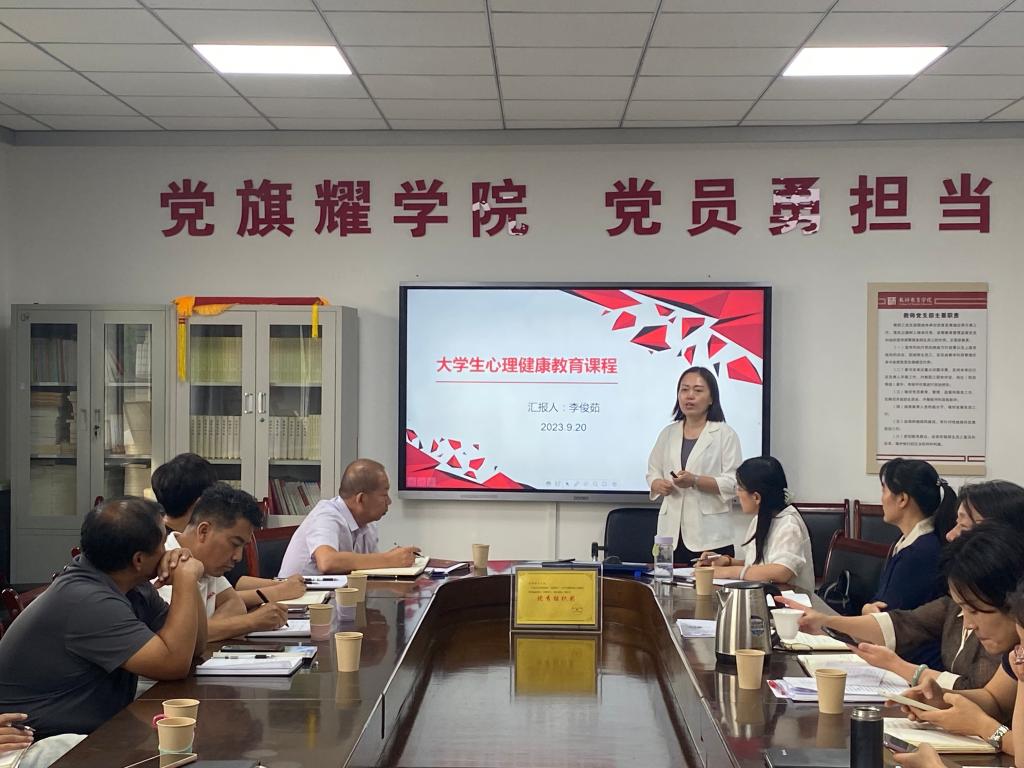高校大学生心理健康教育课程是对大学生开展心理健康教育的主渠道,为切实提高新葡官网大学生心理健康教育课程教学质量,新葡8883官网AMG官网公共课教研室于2023年9月20日召开集体教研活动,本次会议由新葡8883官网AMG官网公共课教研室主任王薇老师主持,新葡8883官网AMG官网领导班子全体成员、教务处王树林副处长、学生处张瑞庆副处长出席了本次研讨活动并作重要发言。