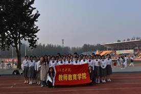 新葡官网入场方队迎着朝阳,踏着清风,走向主席台中央,伴随着动人的音乐,舞动着青春与希望,他们喊着“不忘初心,教书育人”的口号,这不仅是教院学子的初心,更是祖国未来花朵的希望。