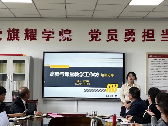 参与培训有收获,共同分享得成长。本次培训和分享交流会的经验,是教师们立足眼下课堂教学活动开展和放眼未来进行教学改革都极其宝贵的资源。相信老师们在今后的教学工作中,也能够将收获不断进行内化外显,将更多的教育新理念和教学新方法应用到实践当中,与学生共同成长。学院也会进一步加大对教师专业发展的支持力度,提供更多学习机会,推动教师成长发展。