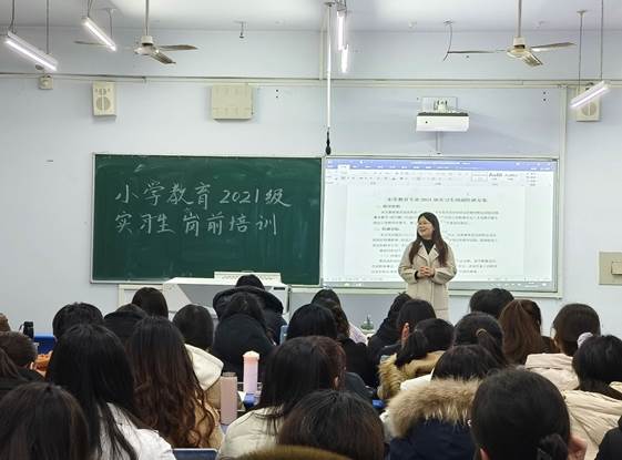 2月26日上午,小学教育教研室主任俞淼老师向师范生解读了岗前培训方案以及校外实习手册,介绍了人际关系交往、教学能力提升及实习安全方面的相关注意事项,为岗前培训与教育实习开好头、起好步。
