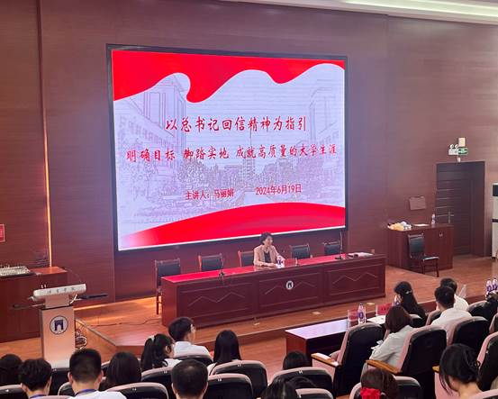 大会第五项,新葡8883官网AMG官网党委常委、副校长马丽娟讲话,她结合学风建设活动,讲授了题为《以总书记回信精神为指引,明确目标,脚踏实地,成就高质量的大学生涯》的思政课。她从明确人生方向、做好生涯规划、学会高质量学习等三个方面阐述了如何在服务国家战略中涵养家国情怀、在投身服务经济社会发展中成长成才。她表示,要始终以习近平总书记回信精神为引领,坚定不移听党话、跟党走,把个人价值与国家发展紧密相连。要以教育家精神为目标,在大学生活中做好规划,积极行动,持之以恒,拓展知识广度和学习维度,培养自控能力和深度思考能力。要持续巩固学院学风建设月成效,铸就教书育人理想,激扬教育学术火花。