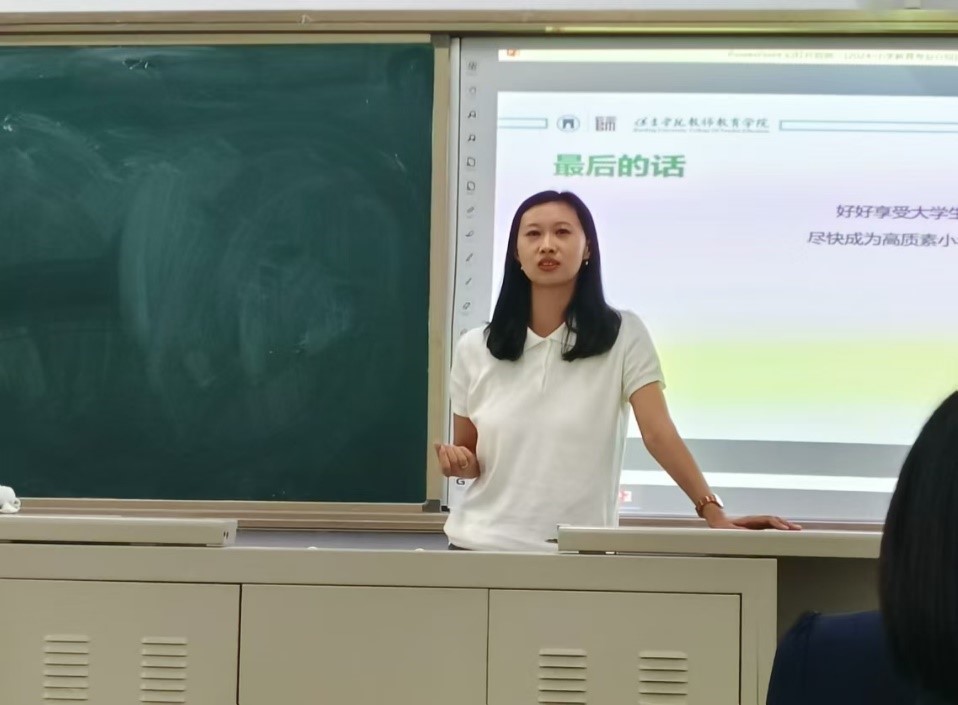 接下来,2021级小学教育专业优秀学生代表刘鑫悦以自身大学经历出发,分别从珍惜大学时光、明确清晰的目标、找一盏“明灯”以及不要给自己设限四方面为新生传授经验,帮助新生调整状态、鼓励新生笃定自身选择,勇于追梦。