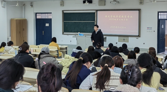 2月26日下午,教育学院学前教育专业召开实习动员大会,为即将实习的学生明确目标、部署任务。学院领导、教师及22级全体实习生参会。 大会伊始,马立志书记提示即将走出校园、走上实习岗位的同学们要务实行动,角色转换,并结合优秀教师案例对实习生提出了三点要求: 1 .严守纪律,准时到岗,体现职业素养;2.主动学习,探索教学方法,积极与导师、幼儿互动,汲取实践经验 ;3.明确立场:牢记“立场决定观点,观点决定方法”,以教育初心引导行动。马书记还特别指出,学前教育实习不仅是教学实践,更需关注幼儿心理健康,做“有温度的守护者”。