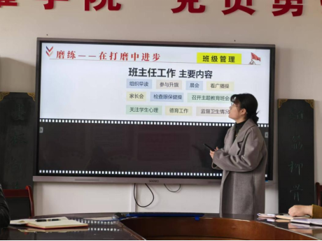 2024年赴新疆顶岗实习学生贾雯荟、杜阔旭向即将赴新疆顶岗实习的六名学生进行经验分享。两位学生分别从当地的自然环境、教学工作、师生关系以及课后生活等多方面进行了介绍。通过学长学姐的分享和交流,大家对即将到来的实习工作加深了了解。