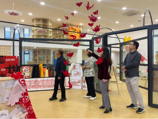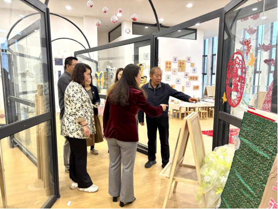 随后,调研团队走访了实习生宿舍,细致了解了同学们的生活起居情况,对幼儿园园长及全体教职员工无微不至的生活安排与人文关怀致以诚挚谢意。在园方领导的陪同下,大家依次参观了独具特色的美术馆、食育工坊、绘本阅读馆等主题场馆,沉浸式体验了幼儿园的展馆特色,走进班级时,领导老师们与天真烂漫的孩子们亲切交流,其乐融融的氛围令人动容。特别令人印象深刻的是,园所将传统文化精髓巧妙融入儿童剧场、托育中心和户外活动区的每个细节都体现了这座兼具教育匠心与童趣幻想的成长乐园的用心,让每位到访者都深切感受到“儿童立场”的教育温度与文化传承的创新实践。